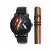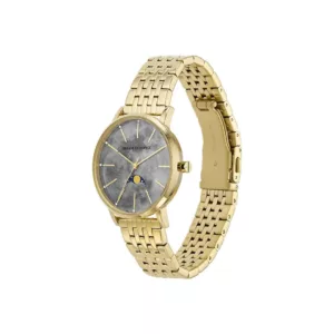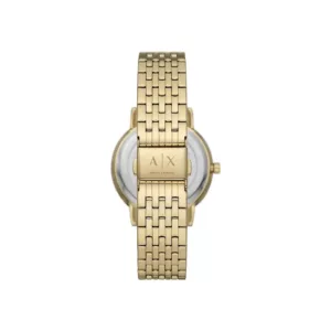 Armani Exchange wrist watch analog for women round stainless steel dial colour grey blue strap colour gold