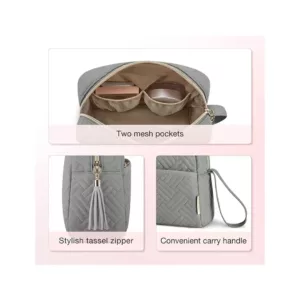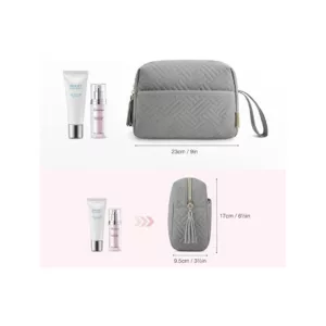 Fashion design the front pocket of this travel pouch is lined with stain-resistant fabric.The textured material looks great and high end,It doesn’t get dirty easily.The tassel gives it a modern and classy look. This cosmetic pouch really brings out the best of our quilting process. Made of water repellent and soft peach-skin fabric with supple touch.The stitching and zipper are great quality and well made. This cosmetics pouch is perfectly sized for storing makeup and brushes at home and while you travel. it’s sized just right for your purse or luggage. A great holiday gift and stocking stuffer. Great ideal gift for birthday,valentine’s Day,Christmas,and those who always in travel.Our toiletry travel bag customized for journey and daily life,this lazy makeup storage bag are the ultimate travel soul mate ,light weight yet sturdy and sized to hold all your toiletries and personal travel items.