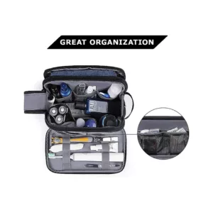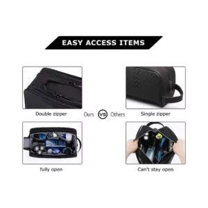 Separate compartment- The front waterproof pocket can keep the wet/dry items separated. The back panel can be lay them flat, easily organize your items. Premium material- Made of water-resistant material, easy to wipe clean and protects the shaver from splashed water. Double zipper design- Features dual zippered opening, making it quickly reach into the main compartment. Simply pull on the connected zip puller for full exposure. Occassion- Suitable for both home and travel use. Unique design allows you to get a toiletry bag, shaving kit, and makeup bag/cosmetic bag all in one.