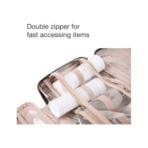 Special Design – Inner main pockets with elastic straps hold bottles upright; Double zipper compartment for easy access the items even not full-opened the bag; Transparent sides for providing clear overview of contents. Material – Water-resistant Polyester peach skin with supple touch; Well-padded design to keep full bag’s shape and provide great protection.