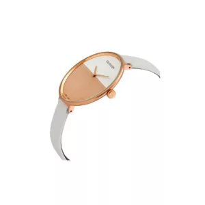 Calvin Klein wrist watch analog for women round leather dial colour white and beige strap colour white