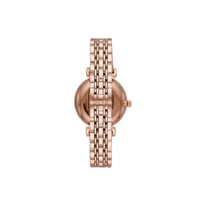 Emporio Armani wrist watch analog for women round stainless steel dial colour white strap colour rose gold
