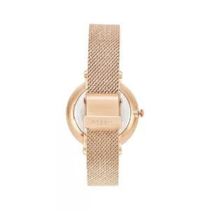 FOSSIL wrist watch analog for women round stainless steel dial colour white strap colour rose gold functions are date, time.