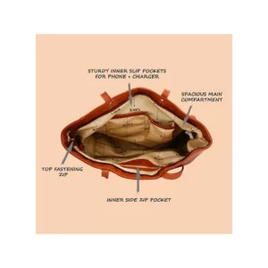 Lavie Malgana tote is a stylish offering for ladies. It is durable, light weight and super spacious. Made from vegan leather, this large hand bag comes in Herringbone texture pattern at the front.
