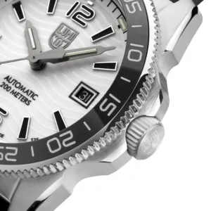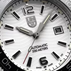 This remarkable wristwatch is part of the Heritage Collection which celebrates Luminox’s 35 years of groundbreaking light technology. For maximum visibility, this timepiece features 16 LLT tubes and a white-textured dial fully coated with Super-LumiNova®, which gives it an aquatic glow when charged and activated in dark light conditions. In addition, the numbers on the bezel are painted with Super-LumiNova®, making this watch Luminox’s most luminous piece to date. Powered by a SELLITA automatic movement, the watch combines a 42mm stainless-steel uni-directional bezel with a black strap and a black ceramic ring insert on the bezel. Whether you’re in the office, catching a wave, or hundreds of meters underwater, this dynamic timepiece is engineered for peak performance.